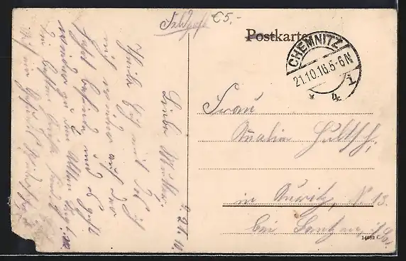 alte Ansichtskarte, gelaufen 1916, Eckschaden re. unten