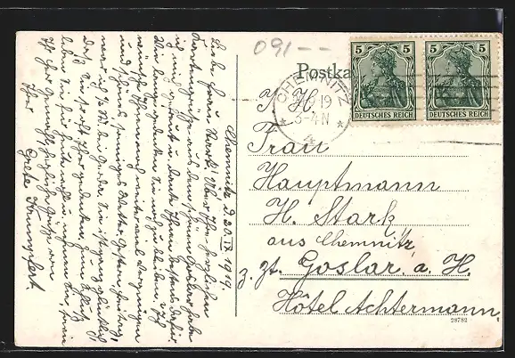 alte Ansichtskarte, gelaufen 1919, Eckknick li. oben, guter Zustand