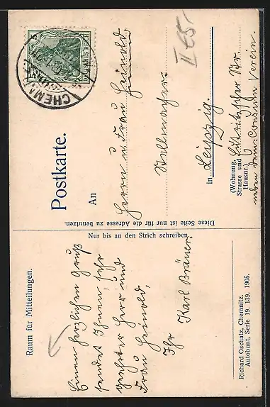 alte Ansichtskarte, gelaufen 1908, Eckknick re. unten, guter Zustand