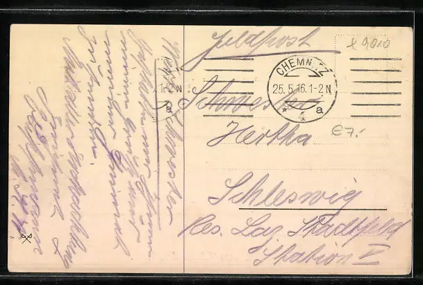 alte Ansichtskarte, gelaufen 1916 als Feldpost, Eckknick unten re., guter Zustand
