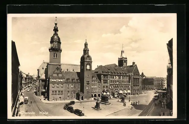 AK Chemnitz, Markt mit Strasse aus der Vogelschau