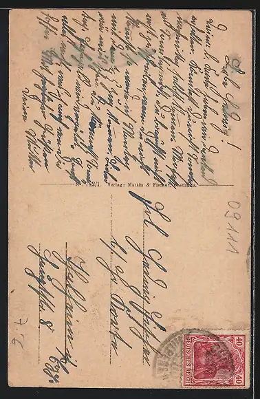 alte Ansichtskarte, gelaufen 1921, Eckknick li. unten, Bugspur re. unten, guter Zustand