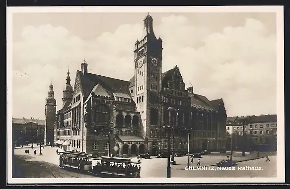 AK Chemnitz, Neues Rathaus mit Strassenbahn