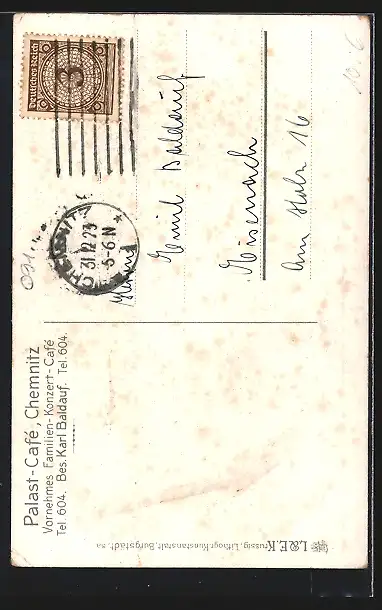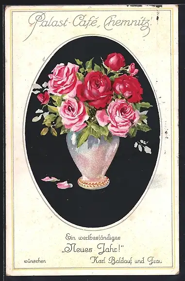 AK Chemnitz, Palast-Café, Eine Vase voll Rosen