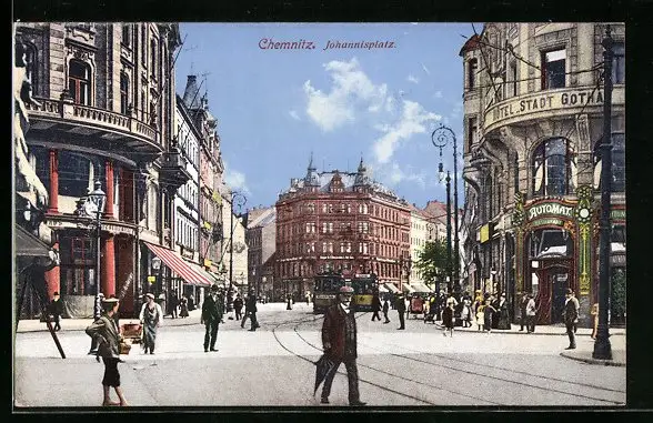 AK Chemnitz, Partie am Johannisplatz, Strassenbahn