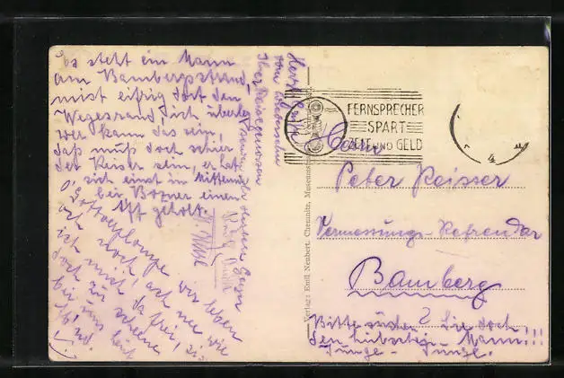alte Ansichtskarte, gelaufen, Briefmarke entfernt, guter Zustand
