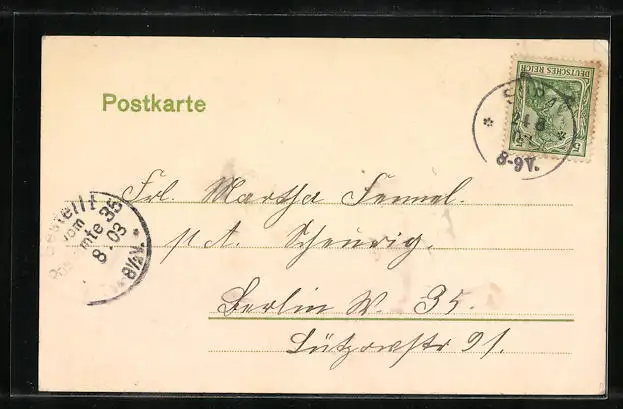 gelaufen 1903, Eckknick links unten, guter Zustand