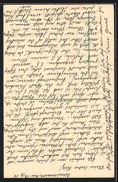Personenbezogene Daten auf der Rückseite der Karte wurden durch blauen Textmarker unkenntlich gemacht. Die blauen Stellen sind auf die Vorderseite durchgeweicht und wirken sich negativ auf das Postkartenfoto aus