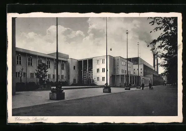 AK Chemnitz, Stadtbad mit Strassenpartie