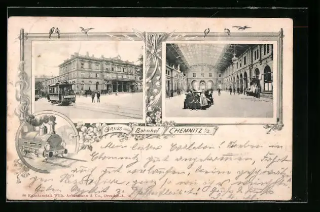 AK Chemnitz, Strassenbahn vor dem Bahnhof