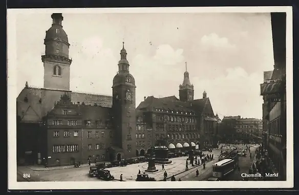 AK Chemnitz, Strassenbahnstop auf dem Markt