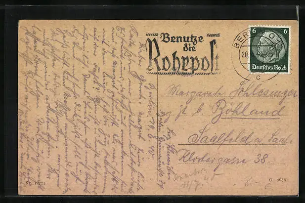 alte Ansichtskarte, gelaufen 1940, guter Zustand