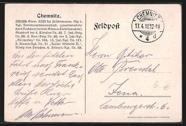 alte Ansichtskarte, gelaufen 1915, guter Zustand