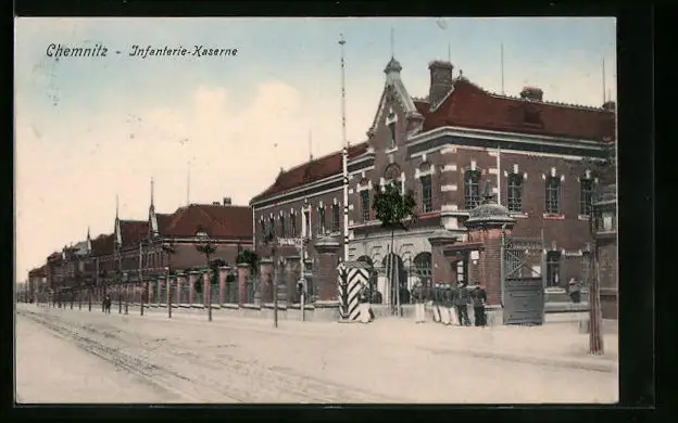 AK Chemnitz, Strassenpartie an der Infanterie-Kaserne