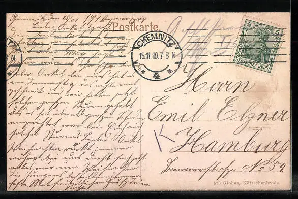 alte Ansichtskarte, gelaufen 1910, Stempelspur, guter Zustand