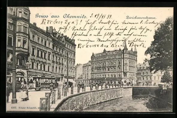 AK Chemnitz, Zwickauerstrasse mit Strassenbahn