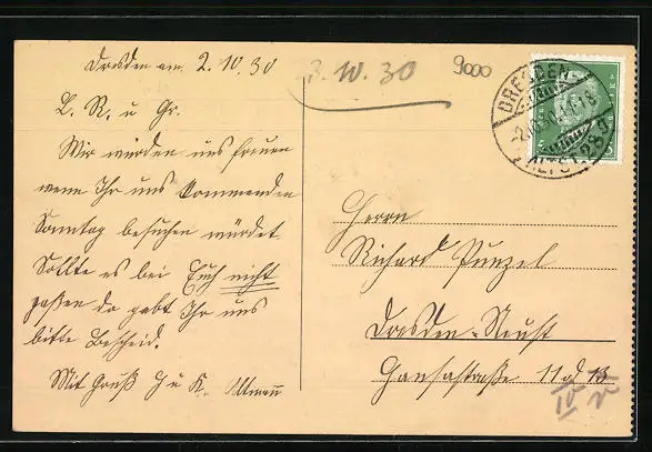 alte Ansichtskarte, gelaufen 1930, guter Zustand