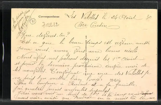 ungelaufen, Rückseite beschrieben 1930, guter Zustand