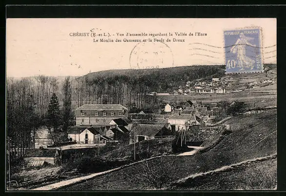 AK Chérisy, Vue d`ensemble regardant la Vallée de l`Eure