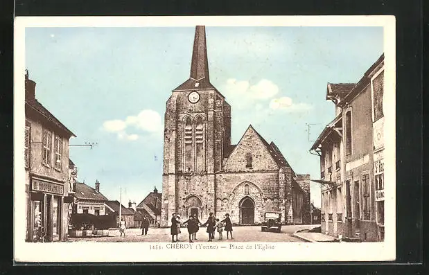 AK Cheroy, Kinder auf dem Platz vor der Kirche