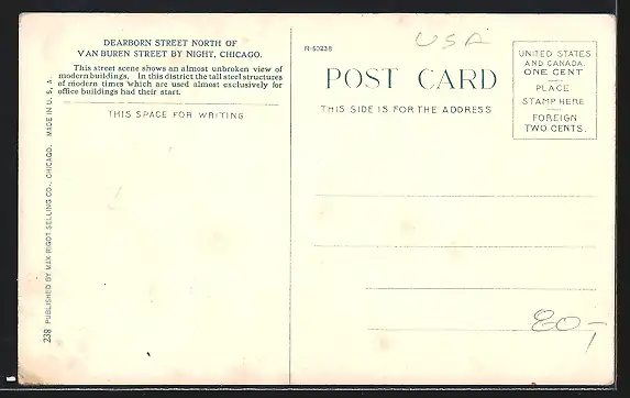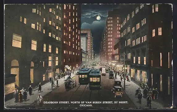 AK Chicago, Dearborn Street at night, Strassenbahn