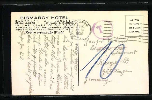 alte Ansichtskarte, gelaufen 1959, Briefmarke entfernt, guter Zustand