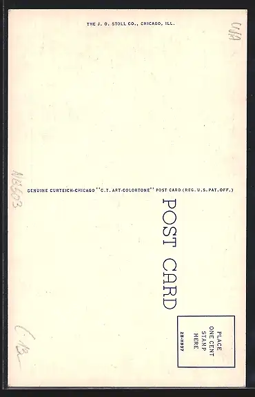 Personenbezogene Daten auf der Rückseite der Karte wurden durch blauen Textmarker unkenntlich gemacht. Die blauen Stellen sind auf die Vorderseite durchgeweicht und wirken sich negativ auf das Postkartenfoto aus