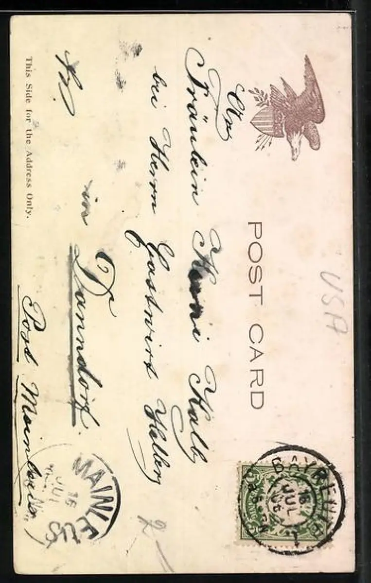 alte Ansichtskarte, gelaufen, rückseitig Oberflächenschaden, sonst guter Zustand