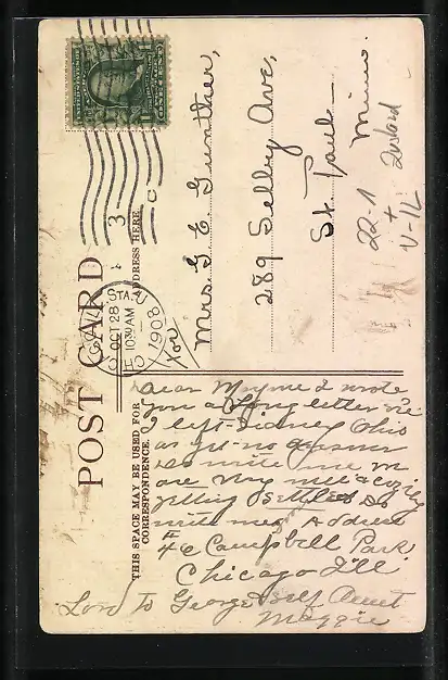alte Ansichtskarte, gelaufen 1908, Eckknicke links u. rechts, guter Zustand