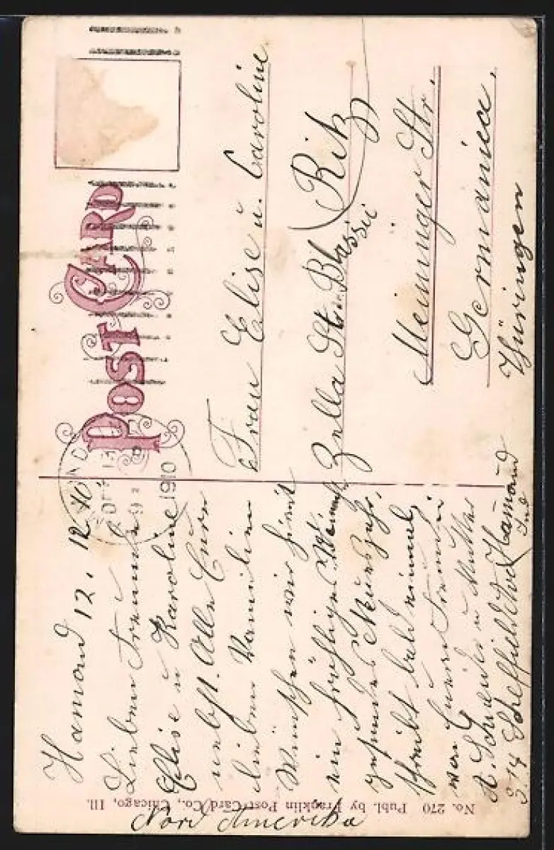 gelaufen 1910, Eckknick re. oben, Einriss re. oben, Stempelspur, guter Zustand