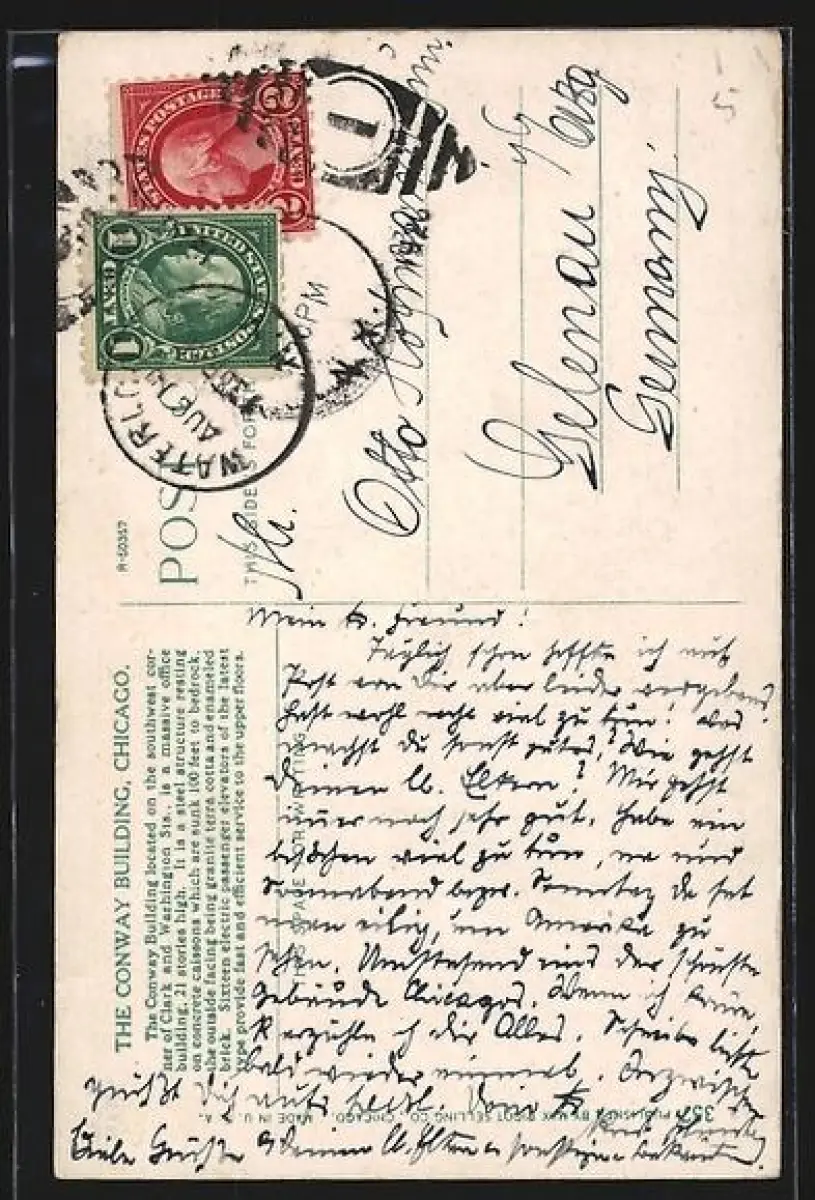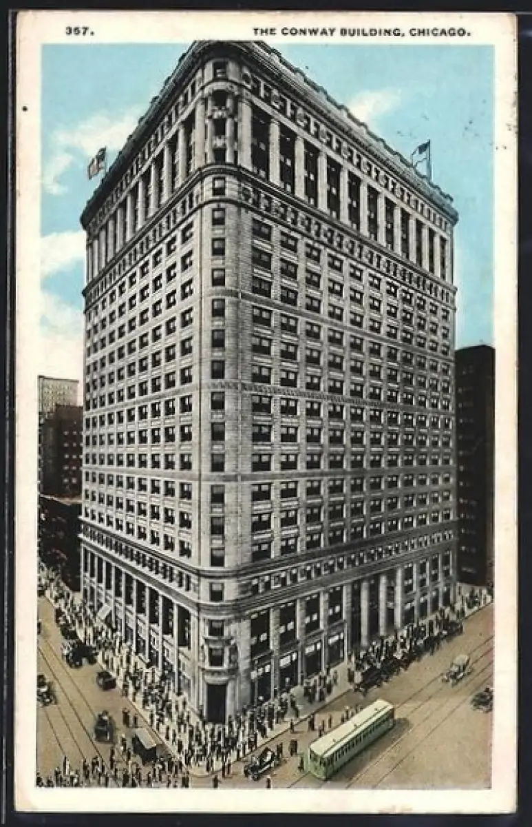 AK Chicago, IL, The Conway Building, Strassenbahn