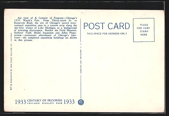 AK Chicago, IL, World`s Fair 1933, Aerial View