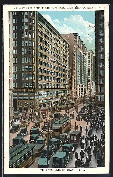 AK Chicago, Ill., State and Madison Sts., Strassenbahn
