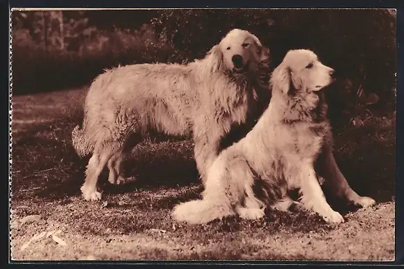 AK Chiens des Pyrénées, Gardiens des troupeaux contre l`ours, Zwei Hunde