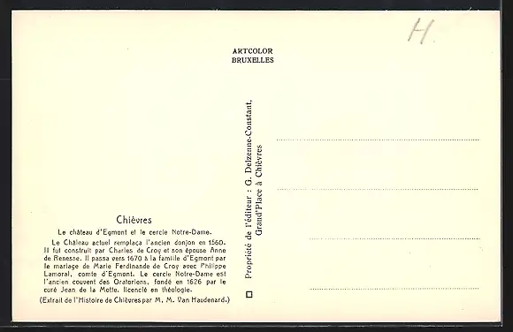 AK Chièvres, Le château d`Egmont et le cercie Notre-Dame