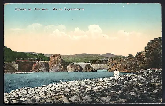 AK Chimgon, Eisenbahnbrücke im Gebirge