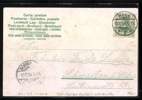 alte Ansichtskarte, gelaufen 1904, Stempelspur, guter Zustand