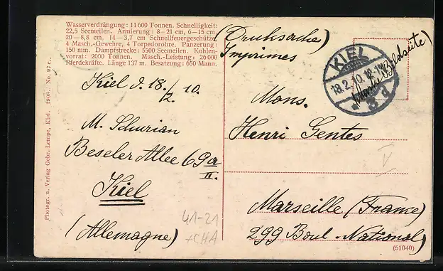 alte Ansichtskarte, gelaufen 1910, Eckknick re. unten, guter Zustand