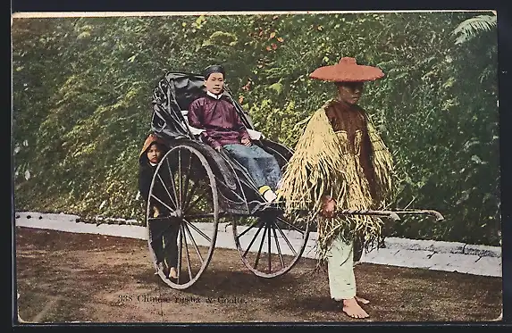 AK Chinese Ricsha & Coolie, Chinesische Rikscha und Kuli