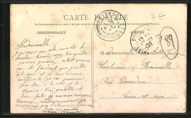 gelaufen 1908, Ecken bestoßen, leicht fleckig, sonst guter Zustand