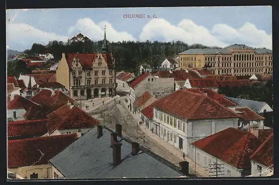 AK Chlumec n. C., Teilansicht mit Strasse von oben