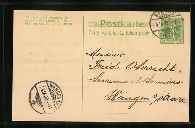 alte Ansichtskarte, gelaufen 1908, Stempelspur, guter Zustand