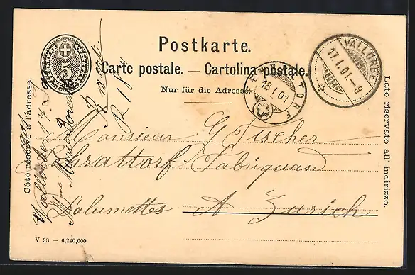 alte Ansichtskarte, gelaufen 1901, Einriss unten re., guter Zustand