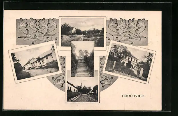 AK Chodovice, Denkmal, Strassen des Ortes, Wohnhäuser