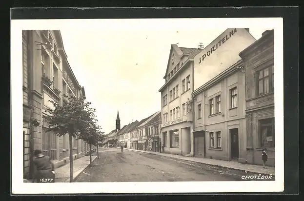 AK Chotebor, Strassenpartie mit Gebäudeanisicht