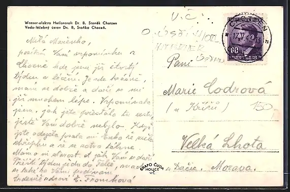AK Chotzen, Wasser-elektro Heilanstalt Dr. B. Stanek