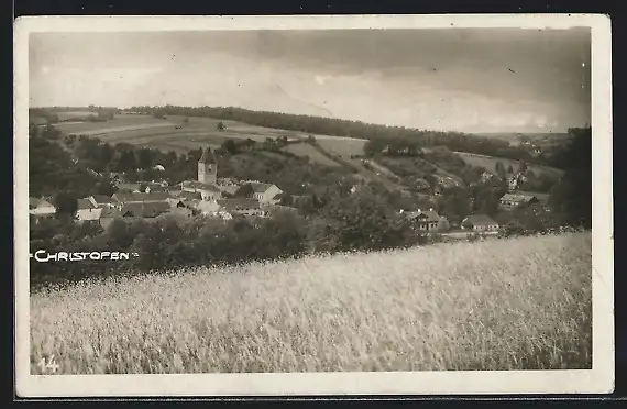 AK Christofen, Ortsansicht mit Feld im Vordergrund