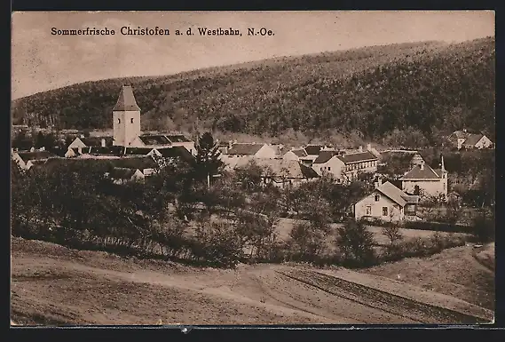 AK Christofen a. d. Westbahn, Ortsansicht mit Kirche