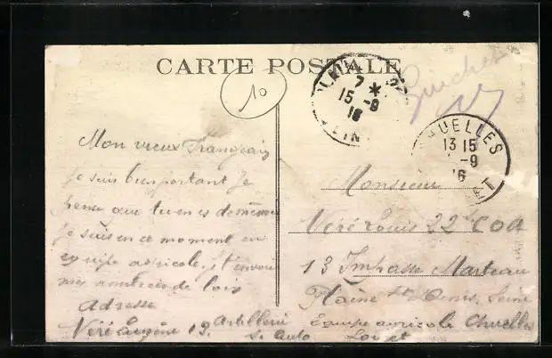gelaufen 1916, rückseitig Oberflächenschaden, guter Zustand