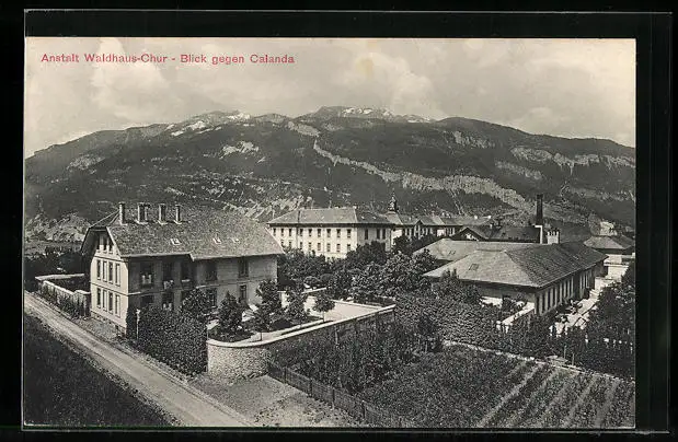 AK Chur, Anstalt Waldhaus-Chur mit Calanda aus der Vogelschau